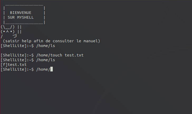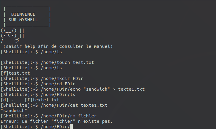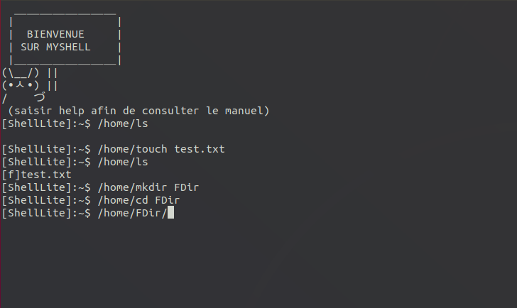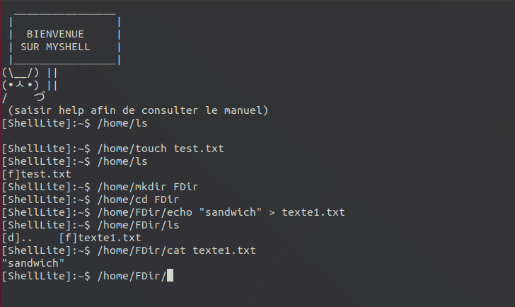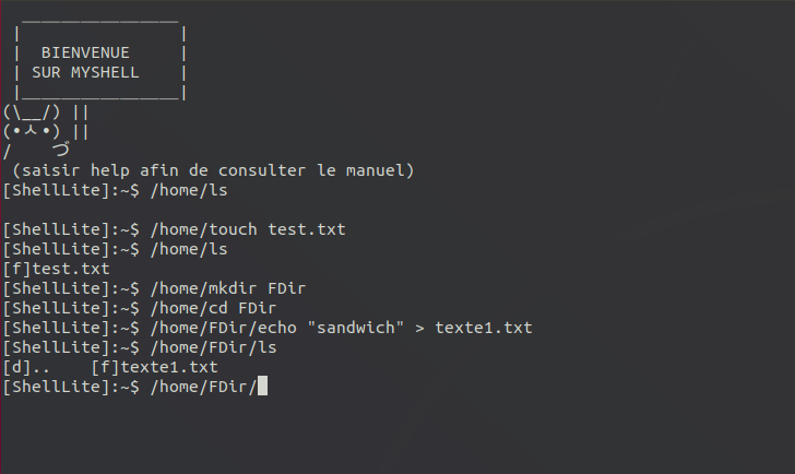 L'utilisateur interagit avec le SGF au travers d'un interpréteur de commandes, inspiré du fonctionnement du shell.